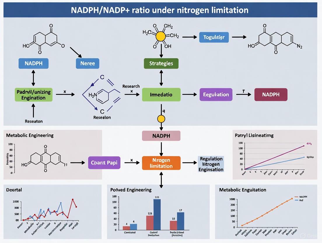 Maintaining the NADPH/NADP+ ratio under nitrogen limitation is not a singular challenge but a systems-level metabolic endeavor. Successful strategies hinge on understanding the foundational rewiring of central metabolism, deploying advanced tools for real-time monitoring, and implementing dynamic rather than just static engineering solutions. The conservation of robust redox regulation mechanisms across diverse organisms, from E. coli to oleaginous yeast, underscores fundamental biochemical imperatives and offers a rich toolkit for synthetic biology. Future directions point toward the refined use of AI/ML to predict PTM-based regulatory switches and the development of next-generation dynamic controllers that can seamlessly maintain redox balance, thereby unlocking higher titers in biomanufacturing and providing deeper insights into cellular stress adaptation in biomedical contexts.