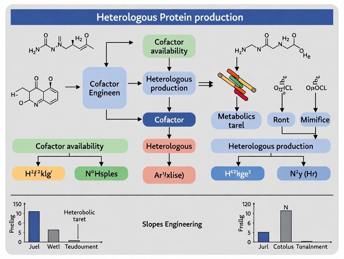 E. coli remains a widely utilized host for recombinant protein production due to its rapid growth, well-characterized genetics, and scalable fermentation. Recent engineering efforts have focused on optimizing its cofactor metabolism to enhance protein yields:
