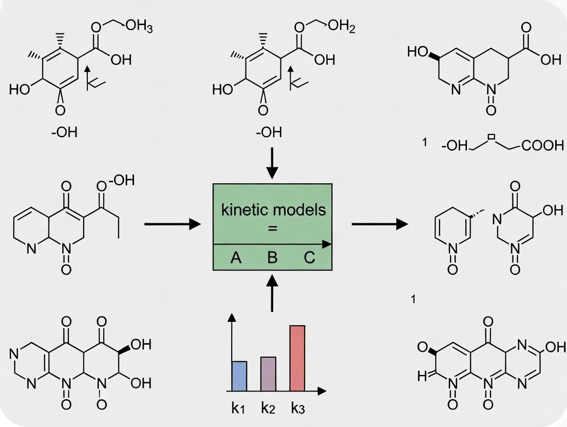 The transition from analyzing static molar ratios to understanding dynamic reaction rates represents a critical advancement in chemical research. This extension from reaction stoichiometry to kinetic modeling is pivotal for developing a complete mechanistic understanding of chemical processes, particularly in pharmaceutical development and materials science. Stoichiometric analysis, governed by the Law of Conservation of Mass (LCM), reveals the quantitative relationships between reactants and products [8]. However, it provides no information about the time scale or reaction pathway. Kinetic analysis addresses this gap by quantifying reaction rates and identifying intermediate steps, enabling researchers to predict reaction behavior under varying conditions and optimize processes for maximum efficiency and yield [9]. This Application Note details protocols for deriving comprehensive kinetic models from stoichiometric foundations, with specific applications in pharmaceutical chemistry and materials science.