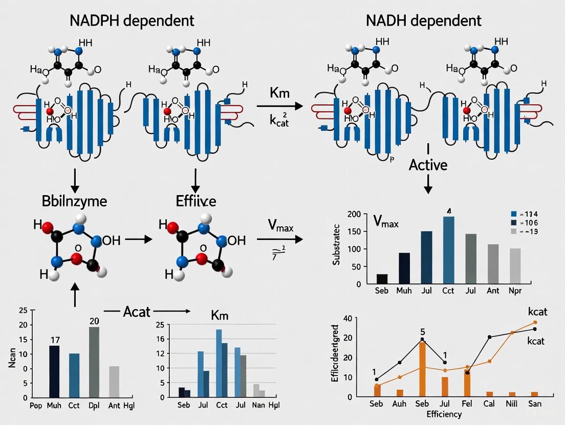 Activity Measurement: Monitor reaction progress via UV-Vis spectroscopy (NAD(P)H absorption at 340 nm), HPLC quantification of substrates/products, or coupled fluorescent assays. Determine kinetic parameters (Km, Vmax, kcat) for each cofactor.